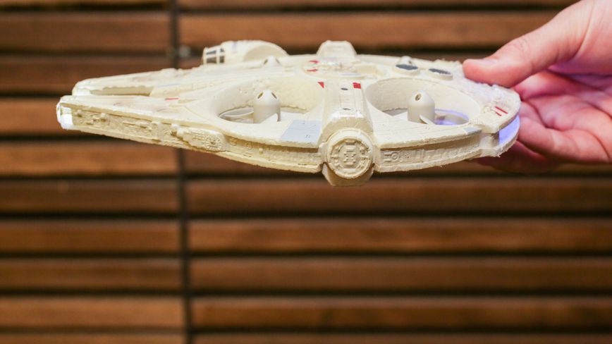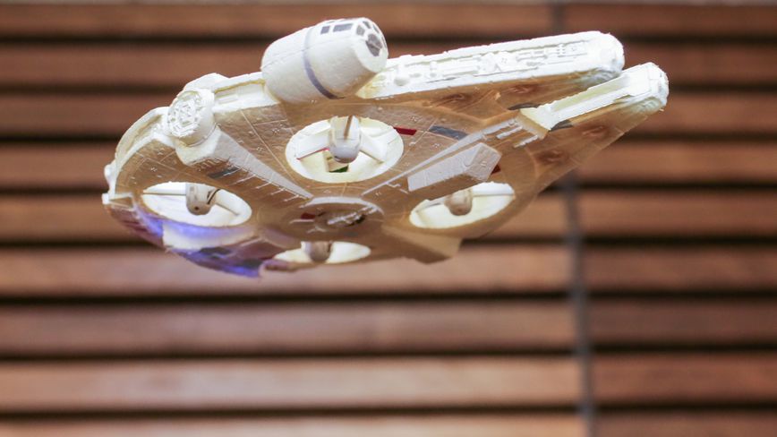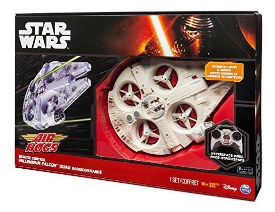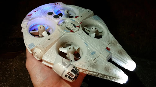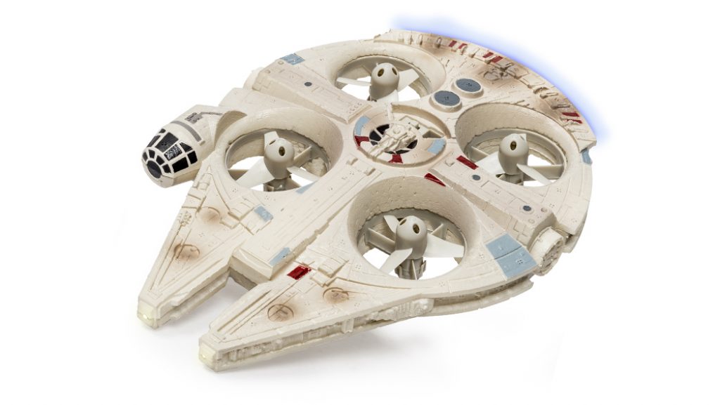 Cuadricoptero tipo dron con licencia oficial de la popular nave Millenium Falcon de la saga fílmica Star Wars. La nave también puede ser utilizada en cuartos cerrados.
